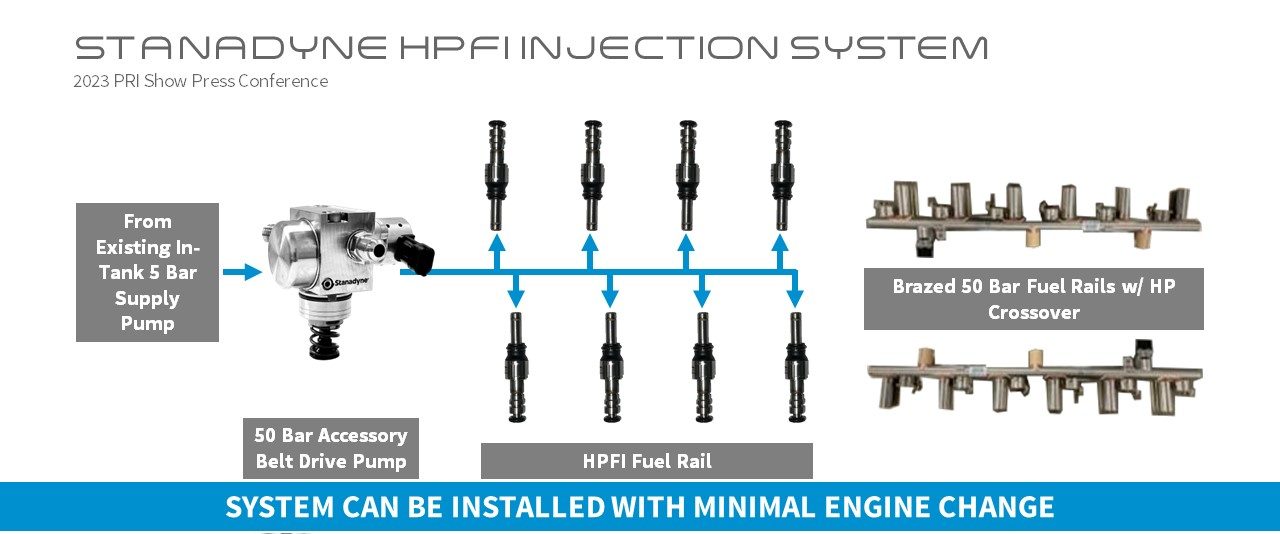 Jacksonville, North Carolina – December 8, 2023 – Stanadyne, a leading global fuel and air management systems supplier, unveiled a patent high-pressure port fuel injection (HPFI) enhancement kit that increases fuel delivery pressures up to 100 bar on performance and racing high-output gasoline engines. This breakthrough in aftermarket port injection technology was announced today at the 2023 PRI Show in Indianapolis.